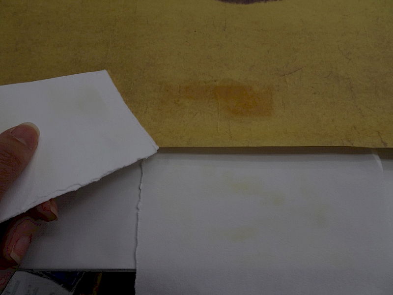 ※巻いた状態で保管する際、底面に接触する部分に支持体の重みが集中するため、左右辺に箭を支える受け付きの保管箱に納めると、より本紙への負担が緩和される。また、展示のために取り付けられたアクリル製の板が取り外せるような仕様であると、支持 体の変形などの懸念も軽減されると考える。