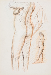 本展で展示される有元の素描に目をやると、実にさまざまな芸術世界が広がっていることに気づくのではないでしょうか。有元は自らの芸術における素描類の重要性をはっきり認識していました。彼の素描は対象再現的なものではなく、むしろルネサンスの素描に倣ってより線の強さと量感を求めており、上で引用した文章のように、「線」と「量感」こそ、芸術家の想像力が問われる場だったのです。
