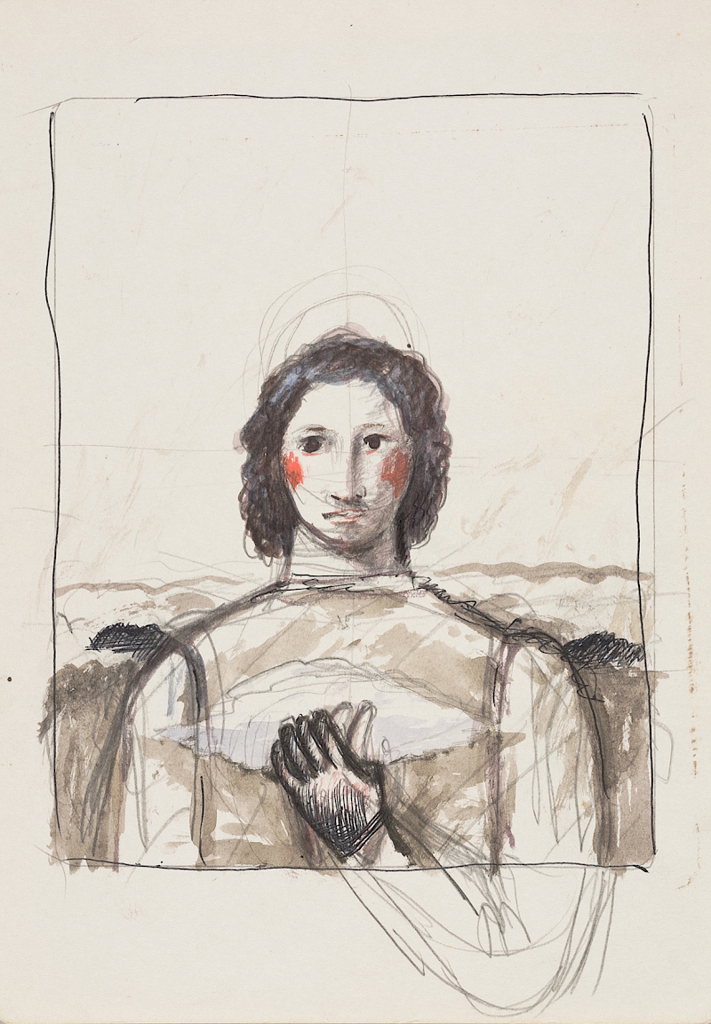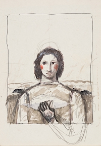 第2回となる今回は、有元利夫の素描をとりあげます。有元がピエロ・デラ・フランチェスカなどによるルネサンス絵画を賞賛し、自らの芸術に取り込んだことは有名ですが、彼の素描作品についてはそれほど広く知られてはいません。特に作品として描かれた素描ではなく、ある対象を前にして写生したスケッチや、あるいは作品制作に直接繋がっていくいわゆるエスキースについては、これまでほとんど鑑賞者の目に触れることはありませんでした。しかし素描とは画家が頭の中のコンセプトを初めて現実世界に表現するものであり、完成した作品よりも純粋な着想の表現であるといえます。ある意味作品以上に芸術家の本質に迫ることができるメディウムでもあるのです。